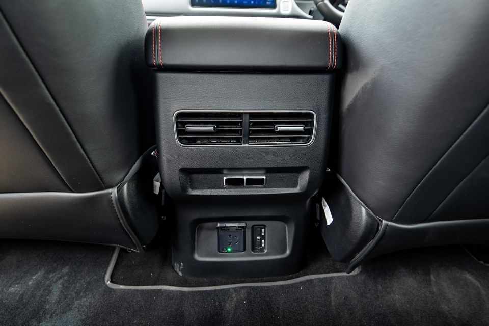 There are decent sized cupholders with a slide-over tray, plus a massive centre console bin with ventilation to keep snacks cool.