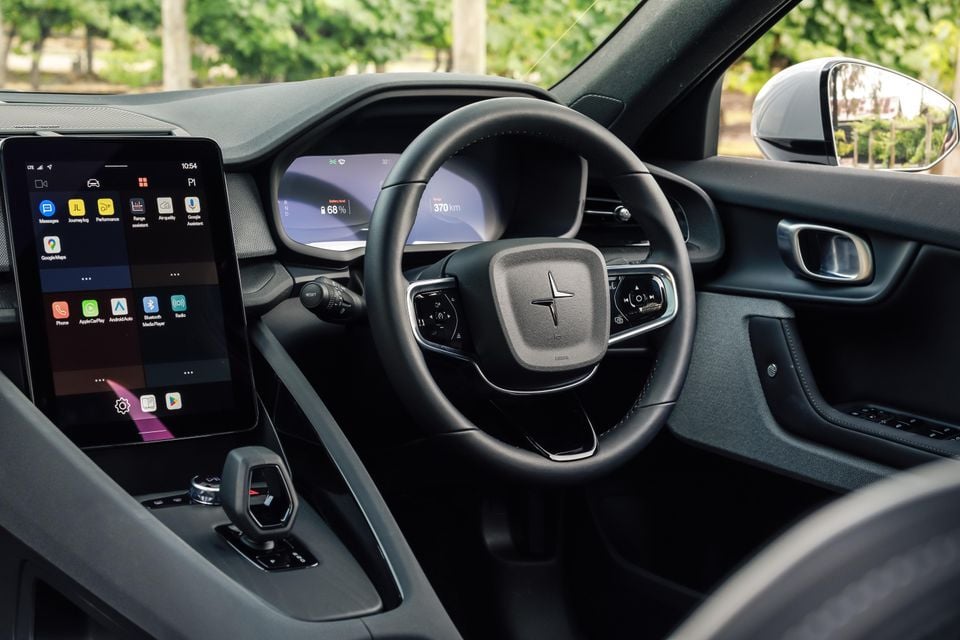 There’s still no start/stop button, which will be a learning curve for those unfamiliar with Polestars or even Teslas. Instead, you just hop in and put your foot on the brake to wake the car up, after which you can flick the gear selector to Drive and set off.