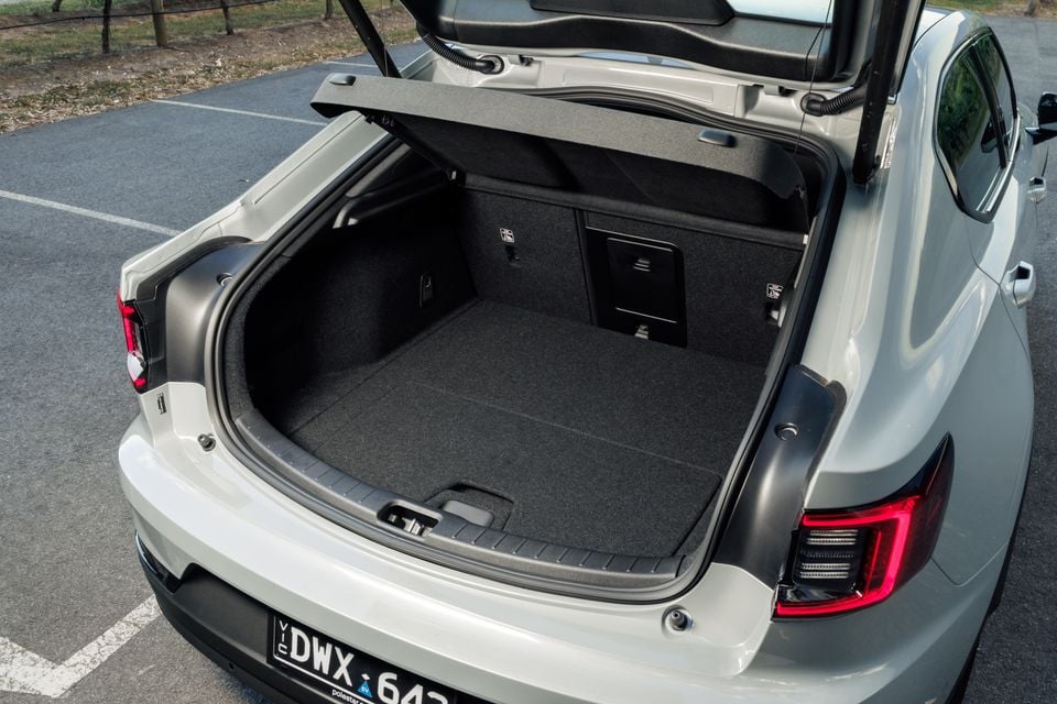 A powered tailgate is standard across the range, though you only get a foot sensor with the Plus Pack, which means it’s now standard on the Polestar 2 Long range Dual motor Performance. Unfortunately, there’s no spare wheel, but that isn’t all that uncommon for EVs.