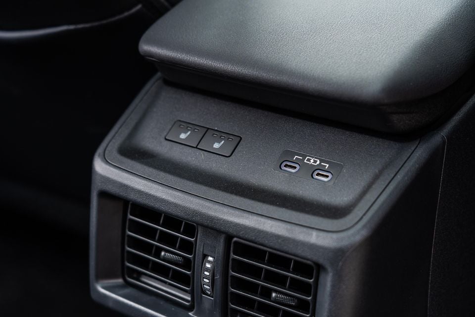 There are a few niceties back here too, albeit without the dedicated screen that back-seat Model Y passengers are treated to. There are two USB-C ports and dual air vents on the back of the centre console, along with seat heating for the outboard positions.