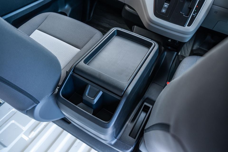 Otherwise, the HiAce is unchanged. There are practical storage options, such as five cupholders (three on the dashboard, two on the back of the centre console), a large passenger-side glovebox, and a centre console bin, which sits under a large plastic tray rather than a central armrest.