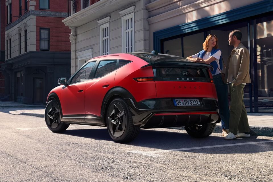 Hyundai is calling it an “aero hatch”, but with a bubble-like shape and thick wheel-arch cladding it superficially resembles the Genesis GV60.