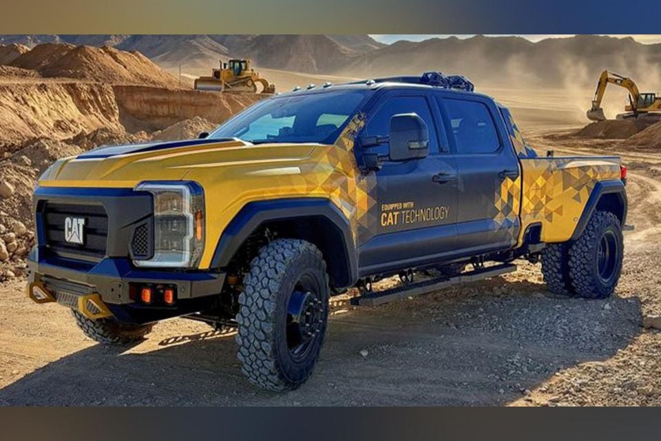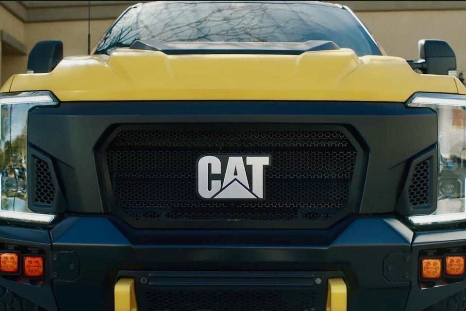 But rather than being a ground-up build powered by a Caterpillar powertrain, it appears the company has just made some styling changes to a Ford F-Series Super Duty pickup, along with the conceptual technological changes.
