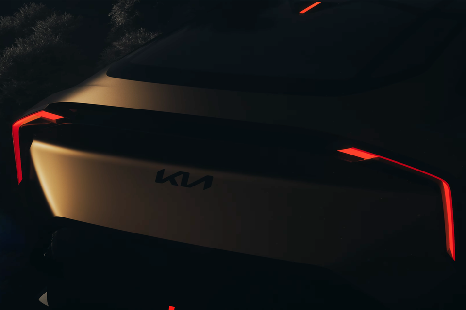 Kia has dropped a teaser for an aggressively styled concept car, and its apparent size suggests this could be the on-again, off-again all-electric replacement for the Stinger sports sedan.