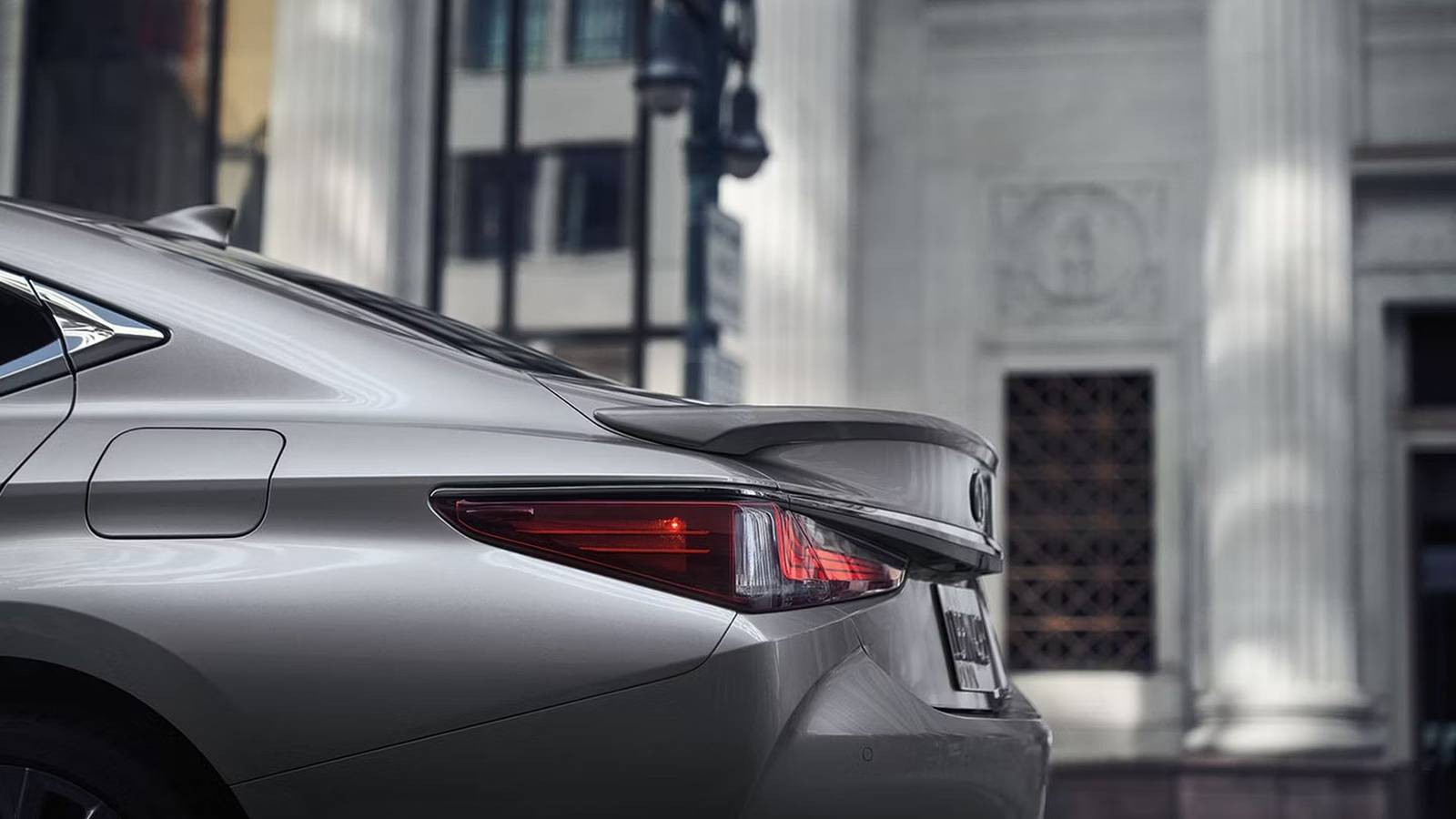 Tracking shot of a silver 2025 Lexus ES 300h