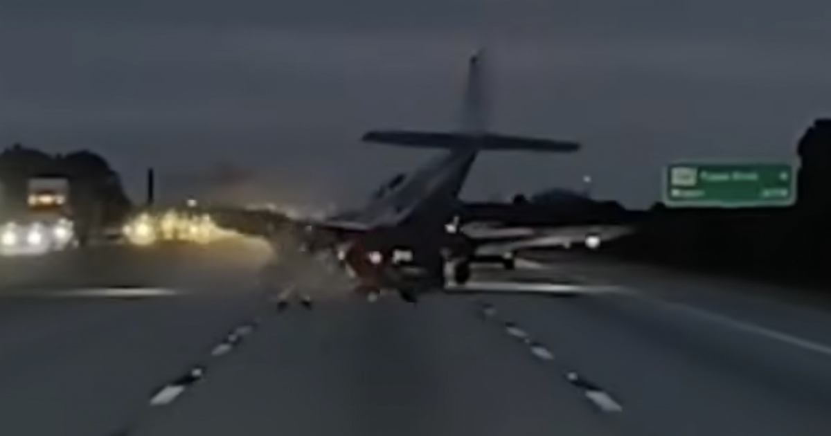 Dash-cam footage captured by another driver, James Coffey, reveals the Beechcraft 95-C55 Baron plane making impact, with a wheel hitting it first before the rest of the aircraft landed atop the Camry.